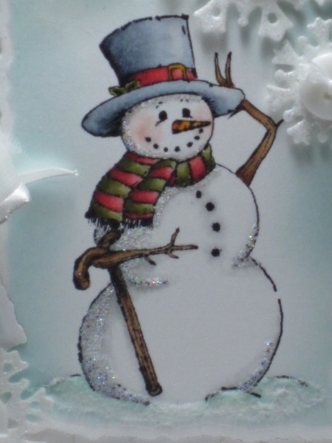This is one stunning card! The snowman has been coloured perfectly & I love all the embossing :)